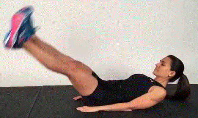 • Supine on ground, point feet skyward and crunch shoulders up off the ground.